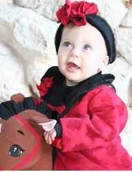 Para un toque de feminidad, hice amapolas para decorar el collar, diadema, gorro y manguito.