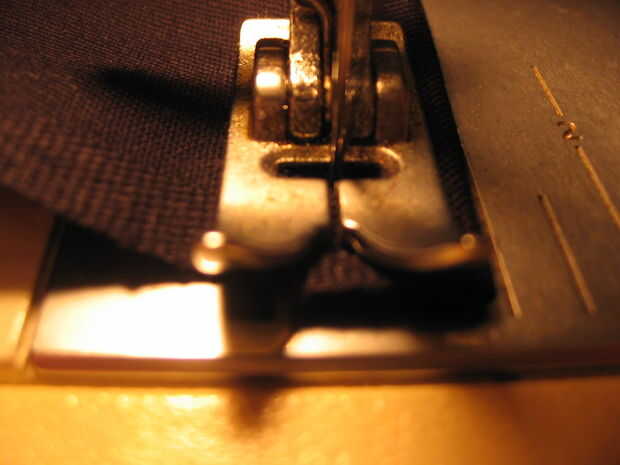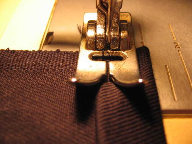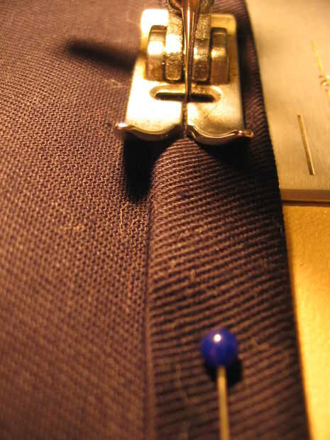 Introduzca la aguja cerca del borde interno, pero no tan cerca que la costura podría caer el dobladillo.