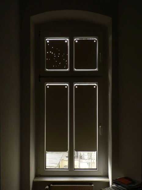 Poner las ventosas en la ventana y cuelgue el láser cortinas de cartulina. Puede que desee colgar el Voyager placa hacia fuera, por si acaso – sabe – de los visitantes.