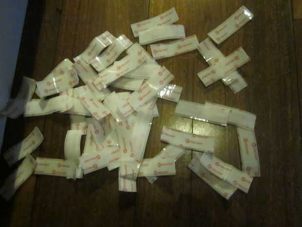 Luego, hacia el otro lado una tira en cierta tensión saludable, pegar el otro lado.