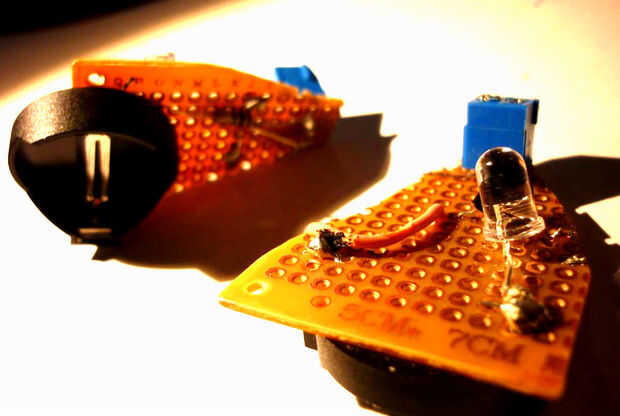 Cuando la electricidad fluye desde los puertos de la frente dos, permite el más alto voltaje y la corriente fluya de la CR2032 para el led de su elección.