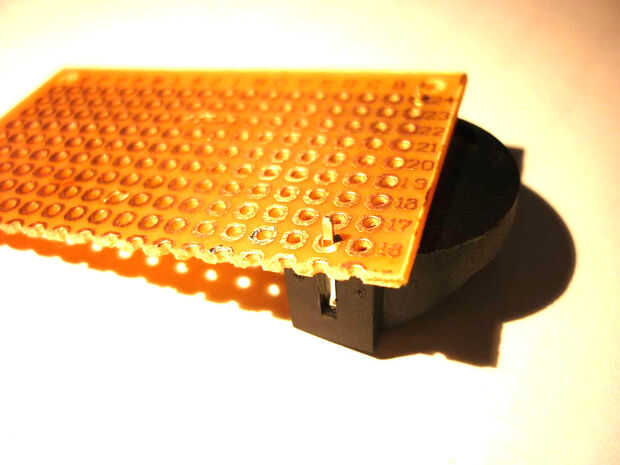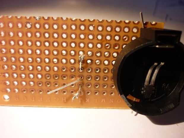 Primero poner el soporte de celda de moneda en el pcb. Luego coloque un alambre desde el lado positivo, en el centro del tablero.