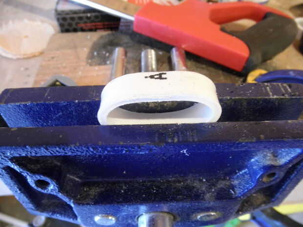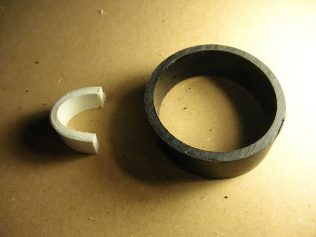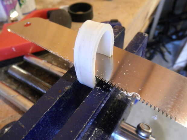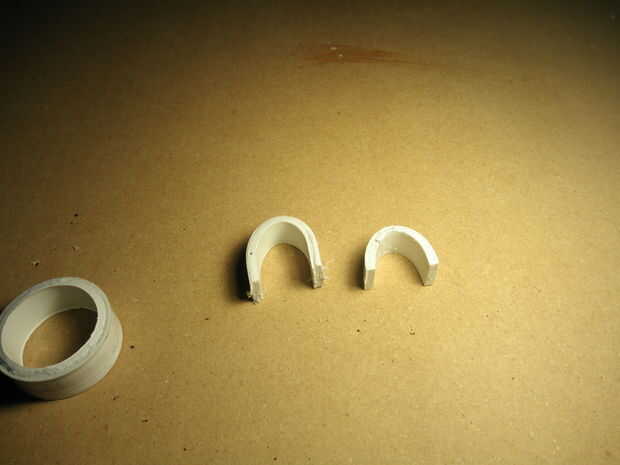 Para aquellos que necesitan para hacer una de estas piezas. Corte un pedazo pequeño de 1-1/4" PCV (aprox 1/2" de ancho). Tomar esa pieza y mojar en el agua justo por debajo del punto de ebullición. Una vez que usted Compruebe la pieza para ensuciarse de maleabilidad en la forma de un enlace. Luego usar ese enlace para completar los pasos anteriores.
