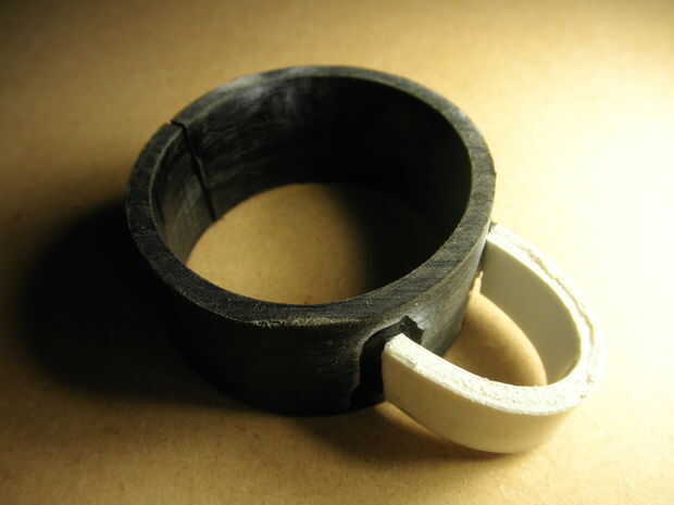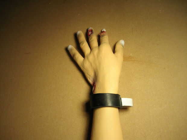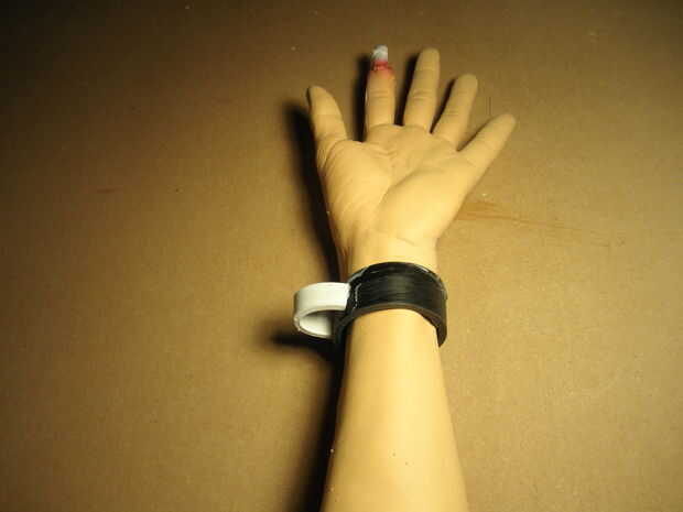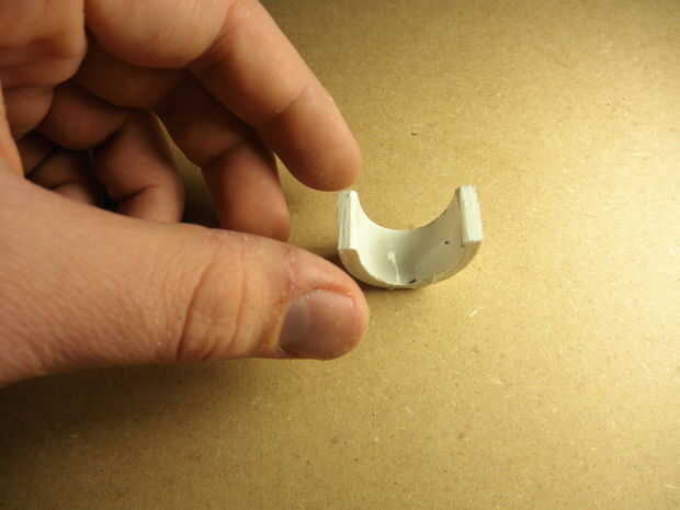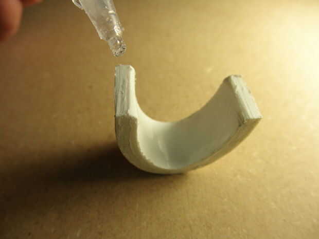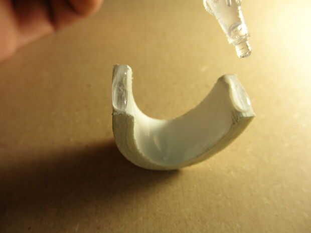 Después de la prueba de la seca de pegamento (dejar curar de mina por unas horas) ajuste el colocarle sobre el brazo cercenado. Usted sabrá si no has usado bastante pegamento si el eslabón medio sale de su explotación. Lije las superficies mejor hacer el ajuste de la relación medio tan al ras como sea posible en el lado del grillete. Vuelva a aplicar el pegamento. Una vez que esté satisfecho cabezal sobre la pintura.