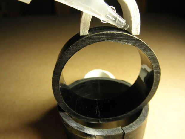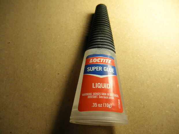 Una vez que tengas tu eslabón medio podemos pegar o epoxi hasta el grillete. Probé tres diferentes métodos para asegurar el enlace con el grillete. Probé el primer estándar de PVC y cemento, dos parte mezcla epoxy y estándar Loctite "super glue". Me ha gustado del pegamento estupendo de lo mejor porque era más fácil de aplicar y añadir más tarde pero todos los métodos fueron exitosos.