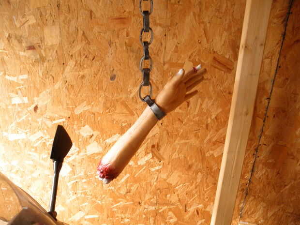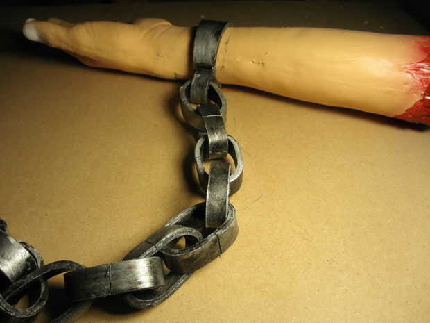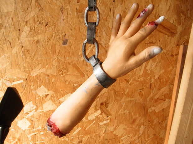 Para un efecto añadido añadir sangre debajo del brazo en el suelo o sobre la superficie de éste quede colgando para acabar con una gran decoración. Yo a colgar esto en mi cubículo con sangre goteando hacia abajo a un papel de computadora.