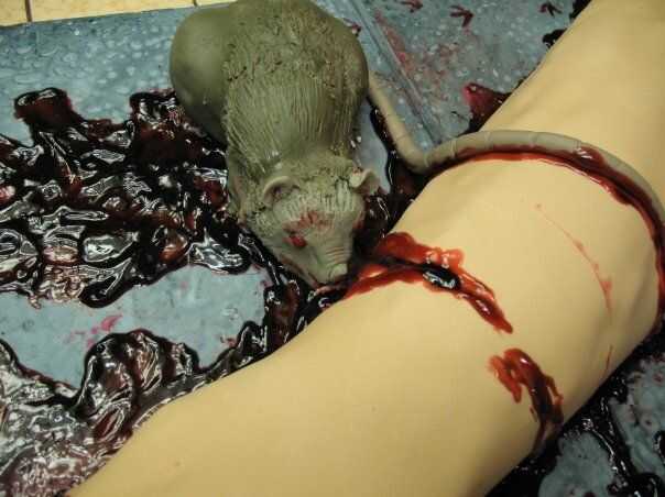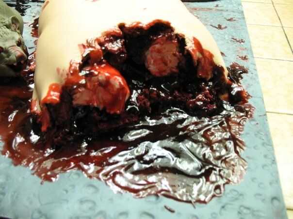 esta es la receta y tácticas para hacer un fondant cubrieron tarta de brazo cortado con crujir los huesos. Esto fue un gran éxito en una cena de Halloween y tenía la ventaja de gente taquillera. :)Se necesita:2 tapetes de siliconaAgarradores para o