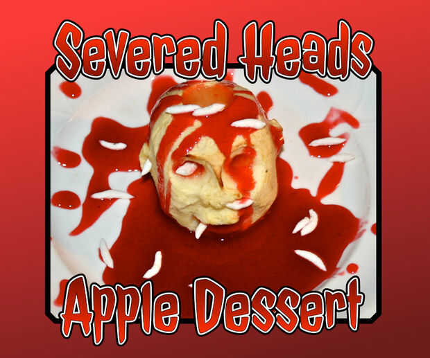 La parte más difícil de este postre lindo y espeluznante talla las manzanas - y ya que eres de la hornada les y rociándolos con "sangre" y "gusanos", realmente no importa si su resultado está lejos de ser perfecto.