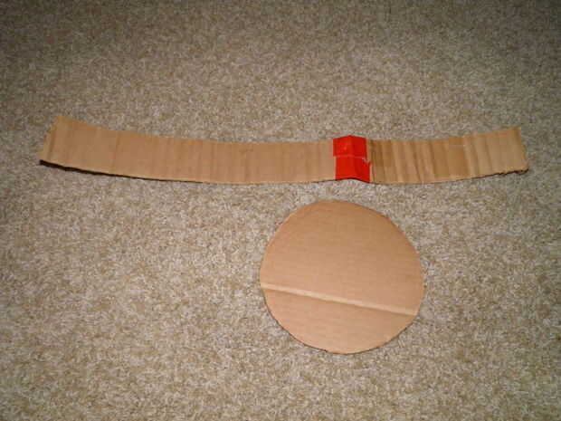 Crear una pequeña tira de cartón que es la longitud de la circunferencia del círculo pequeño. y la altura que quieras el sombrero para ser.
