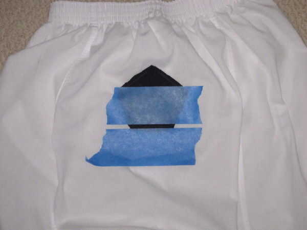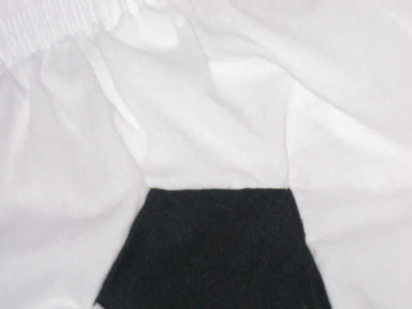 A continuación, doblar el material cortos hacia adentro el borde del Pentágono adjunto y cosa una costura desde el interior de los cortos (o pegamento de la costura desde el exterior de los cortos). Crear uniones similares para cada borde del Pentágono. Los bordes sueltos originales de la tela del Pentágono deben ser completamente doblados en y escondidos en la costura.