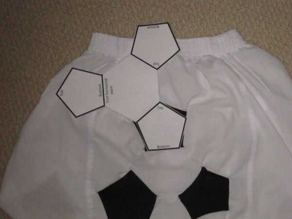 Mantenga la adición de pentágonos y creando las costuras hasta que los cortos estén cubiertos. Hubiera podido cortar pentágonos más de la tela dependiendo de cómo es grande son shorts.