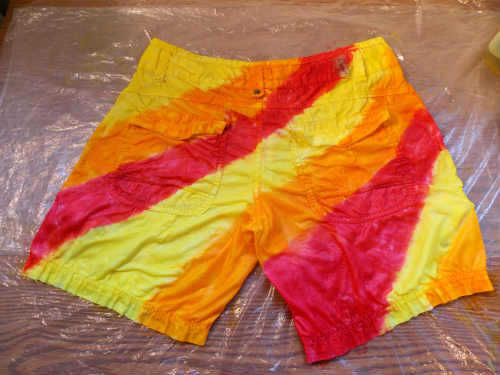 Cubrir los cortos con otra hoja de plástico y con cuidado voltee todo el asunto. Quitar el plástico y la parte trasera de la pintura. Otra vez, esto puede ser el mismo diseño que el frente o puede ser completamente diferente!