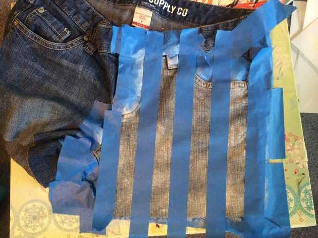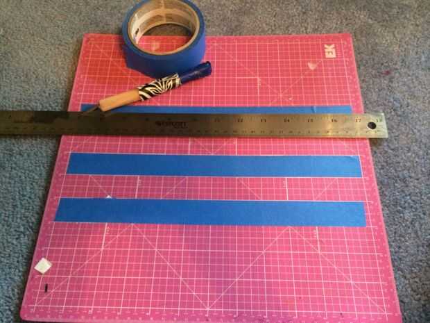 Usando la cinta de pintores, cortar tiras de 1 pulgada. Entonces les capa en los cortos asegurándose que fueron espaciados uniformemente.