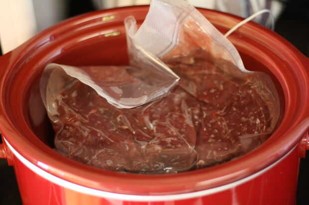 No dediquen los detalles de Sous Vide de cocina como la web, incluso Instructables, abunda en discusión, definición, tutoriales y lo que no. Por lo general, sous vide requiere equipo algo caro porque un baño de agua debe realizarse a una temperatura