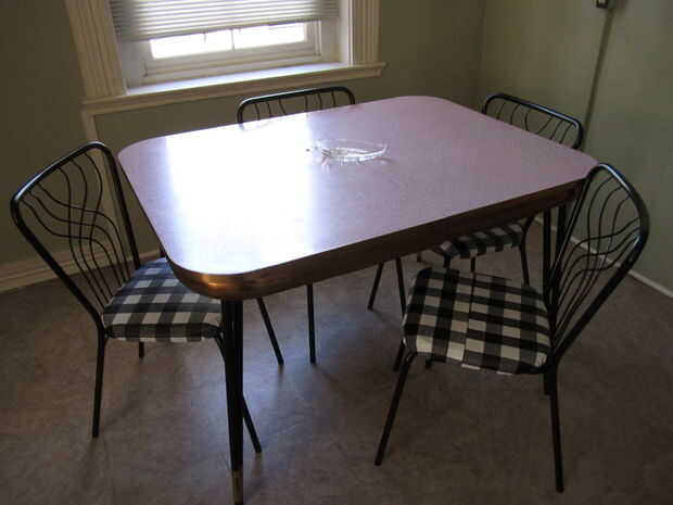 Recuperó mis sillas de la cocina con hule fantástico a la venta. Sensación muy buena que todos ellos coinciden con ahora - incluso si una pareja tuvo que ser reconstruido juntos! : D Además, sólo tenía un trozo de 10 x 12 y algunos trozos de la yarda. No hay residuos, wooooo!