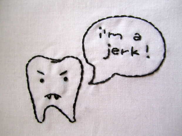 Bordado de mi diente horrible. Finalmente están llegando mis muelas del juicio. Podría morir.