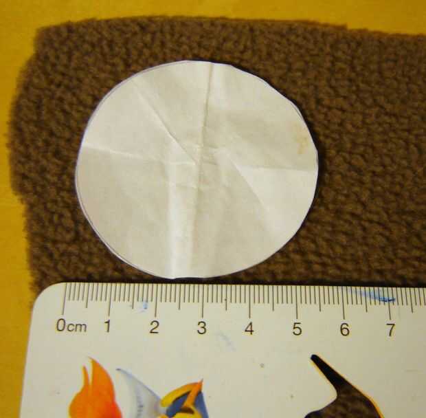 • Cortar cuatro círculos de la tela de forro polar sobre 5-6 cm de diámetro