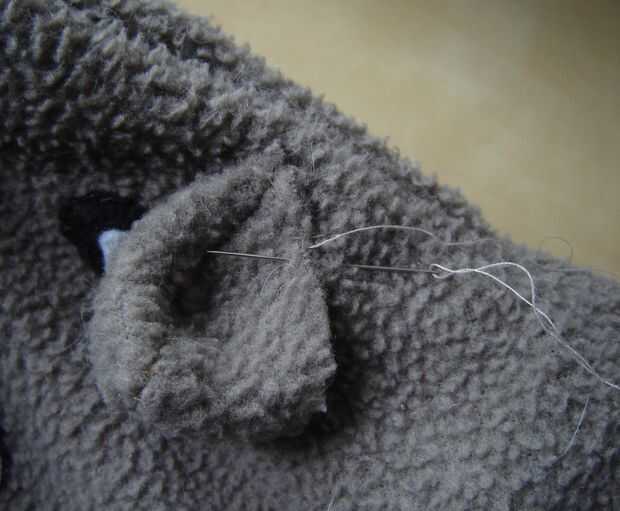 • Coser las orejas en las zapatillas con una puntada del azote, haciendo una ligera curva para la parte interna del oído.
