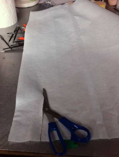 Fieltro blanco: cortar tiras de cabeza y la cola. Cortar tiras de la mitad del cuerpo en anchura máxima, luego doblar por la mitad (para asegurar la simetría). Marca nuevo zip extremos, dibuja una curva suave entre ellos y cortar la curva.