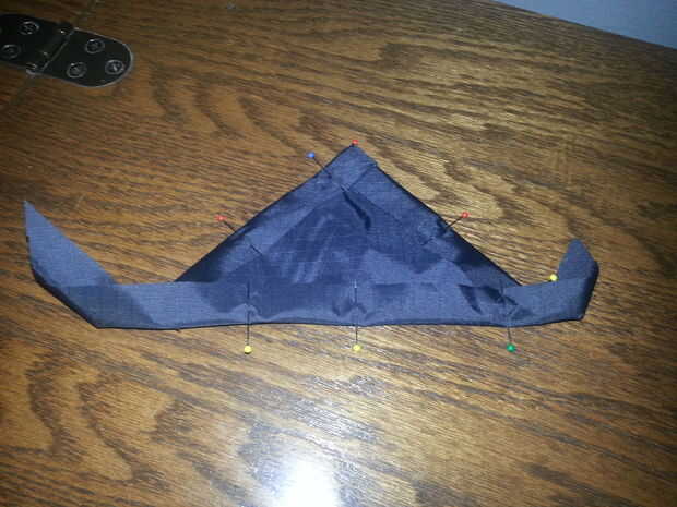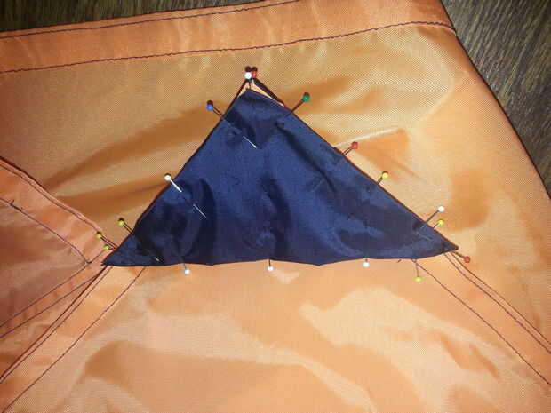 Pone su otra pieza de nylon en las esquinas de tu cometa y marcar donde quieres cortar.