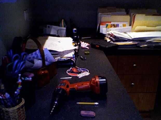 Las dos cosas opcionales son un sacapuntas (para hacer el lápiz más corto) y, si lo desea, un taladro, para hacer el agujero en la goma de borrar. Sé que esto parece como el uso de una pistola de elefantes en un ratón, pero es mucho más rápido.