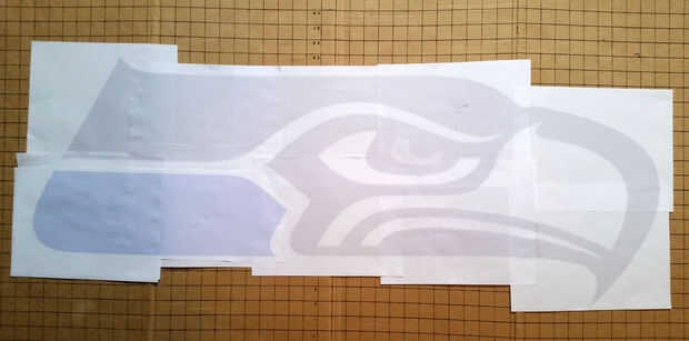 Primero, (los dedos cruzaron la NFL no demandarme) tomé el logo en Photoshop, hecho en escala de grises y se iluminó, (así que no pierdo la tinta cuando lo imprimí) y amplió 725%.