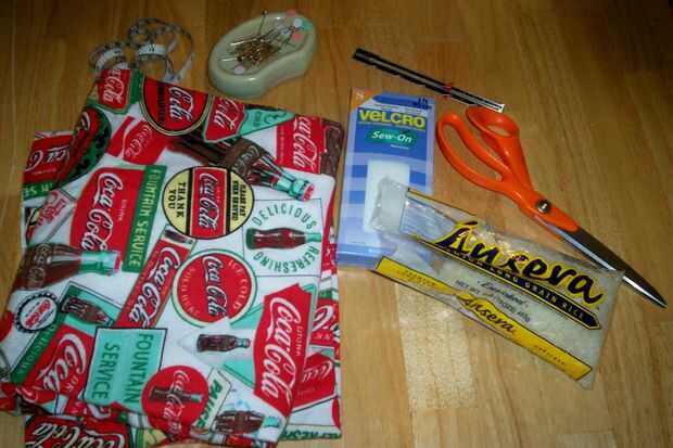 Para este proyecto, que necesitará algún tipo de tela resistente pero suave. Utilicé la franela, pero también puede usar una toalla. Usted también necesitará suministros de costura, una cinta métrica, velcro y un saco de arroz. No importa qué tipo de arroz se utiliza, aunque no recomiendo arroz minuto. Lo que queda se puede hacer más o comer!