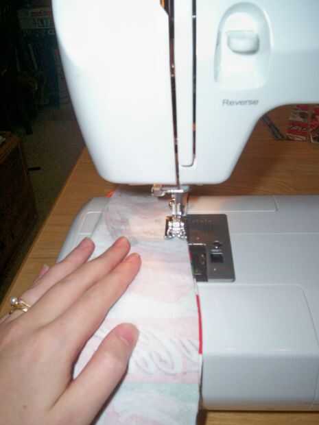 Gire la tela donde los lados derecho se toquen y coser la costura más larga, hablando de un margen de costura de 1/4 de pulgada. Espalda cosida en cada extremo para asegurarse de que era robusto.