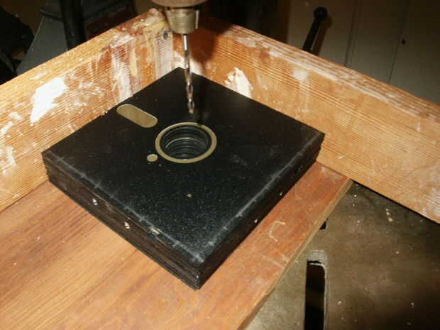 Comience a taladrar, aquí he hecho una caja de ingletes con dos muros perfectamente perpendiculares para mantener la pila cuadrada. Sienta libre de hacer lo mismo si lo desea