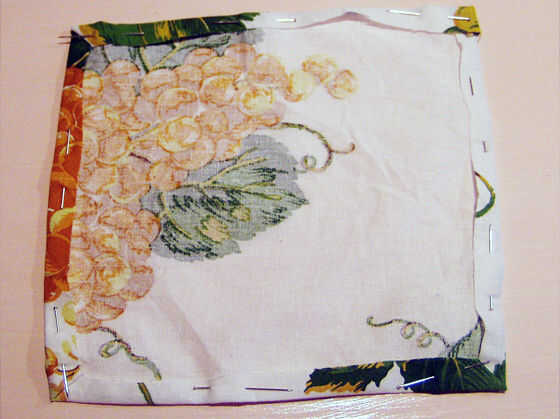 Rivoltate de dentro me lati del quadrato lungo i segni del gesso e fissate con gli spilli.