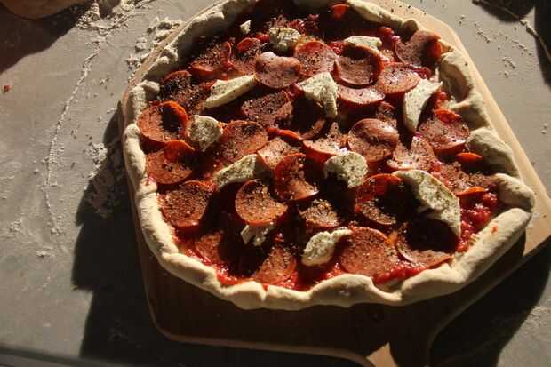 Decadente, caliente, oozie, pizza de postre derrite en la boca!! Sí, es pizza porque se hace con masa de pizza y seguro que se puede corta como uno.A primera vista, usted puede pensar que esto es un rollo de canela. No lo es. Se trata de una pizza de