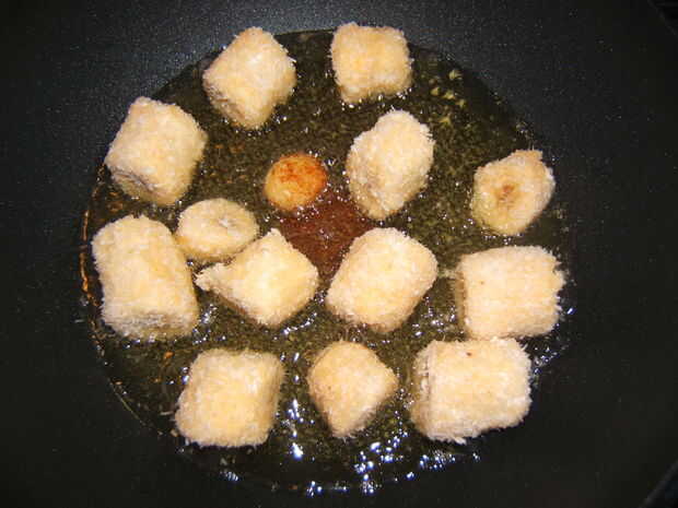 Ahora, que está cubierta la babana, nos podemos disparar hasta la cocina (bueno, a ser trueful utilizo uno eléctrico), poner sobre la bandeja, un relleno con aceite, aroung la altura de 1/2 pulgada. Cuando el aceite está suficientemente caliente, (usted puede verificar esto, si pones un trozo en ella al comienzo, y cuando comience a hervir alrededor de él, está listo para freír) en el plátano y les vuelta a veces, por lo que no se quemen hacia fuera ", dejarlos en hasta que adquieran un color dorado, al que se hace, los plátanos están listos. Poner en una toalla de papel, un dejar que enfríen...