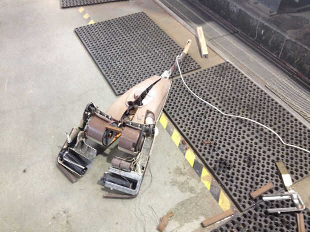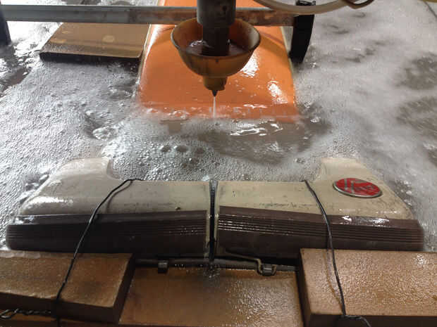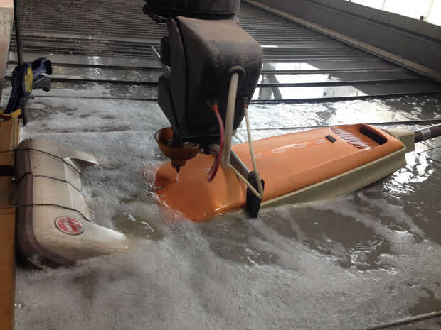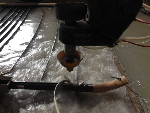 He decidido no modificar la máquina antes de cortarlo: que realmente no requiere de ningún aumento. El sistema criba se basó en mis ensayos previos utilizando la fuerza de sujeción lateral. Tuve cuidado establecer el chorro a 6" de acero mientras que fue cortando a través del motor, sino los acelera significativamente una vez que fue a través de la parte. Tomé la aspiradora de la máquina antes de que era a través de la corte el mango hasta que pude ver lo que se parecería ubicados a, pero decidió que este sería más eficaz si fui completamente a través de él.