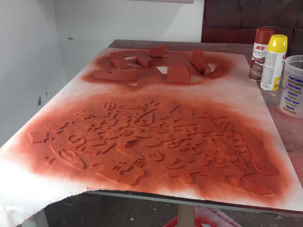 Para los pedazos más grandes de la escala, se reunieron los siguientes materiales como agregado: hilo, madera, roca volcánica, sal, briquetas de carbón, aluminio expandido, desechados impresiones 3D, material de sudadera y vinilo. Puse los tubos en las bandejas de plástico y en cubos, sellados la parte inferior con silicona y luego del molde una capa de 1" de resina en la parte inferior para asegurar que el sello sostendría. Dos días más tarde, derramé en resina alrededor de la mitad de la altura de cada molde--unos galones en cada tubo.