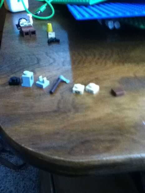 Una pieza de lego especiales con boca de Steve y la nariz en él.