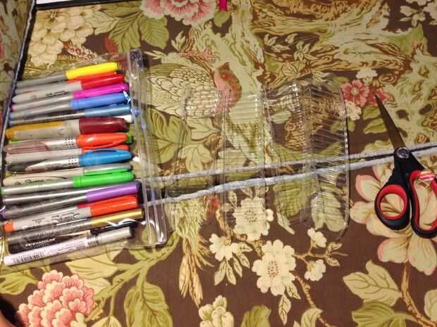 O hacer un diseño geométrico de forma libre, o garabatos. Puede usar sharpies que resultarán en colores transparentes. También puede utilizar marcadores permanentes opacos que son metálicos. Yo no he probado plumas de la pintura.