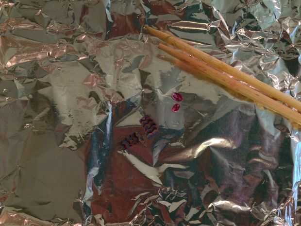 Precaliente el horno tostador a 215 grados. Mina pongo en papel de aluminio pero también se puede usar papel pergamino. Colocarlos sobre la bandeja y al horno y verlos. Se tarda unos 30 segundos. Flip y enrollamiento y suele volver un poco plana. Sacar la bandeja y utilizar los palillos para que sean planos si son demasiado rizado o baches.