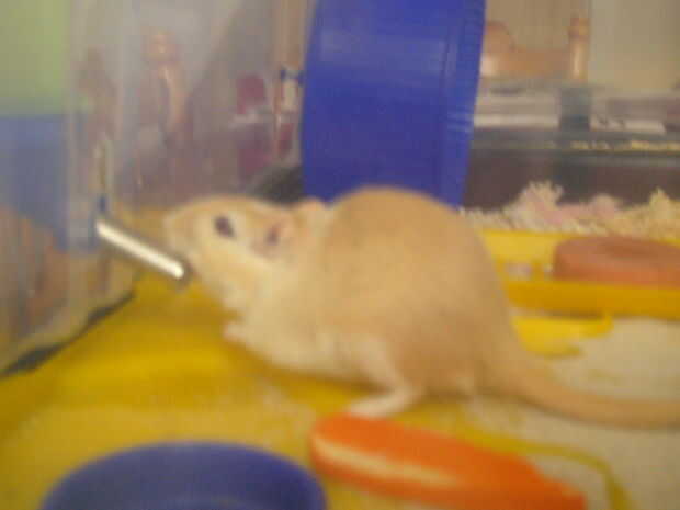 Aquí están unas fotos de mi jerbo 'cacahuete'.