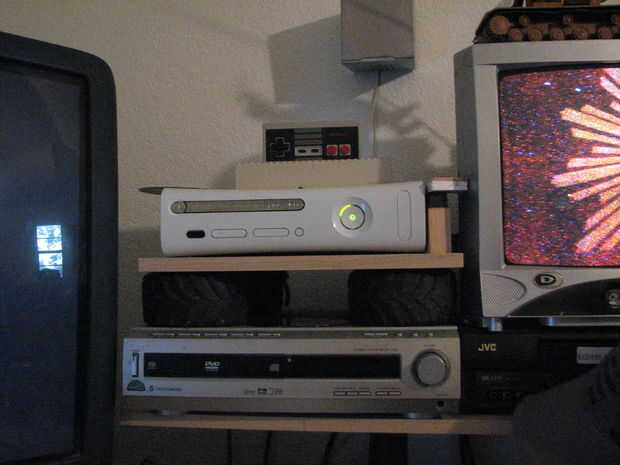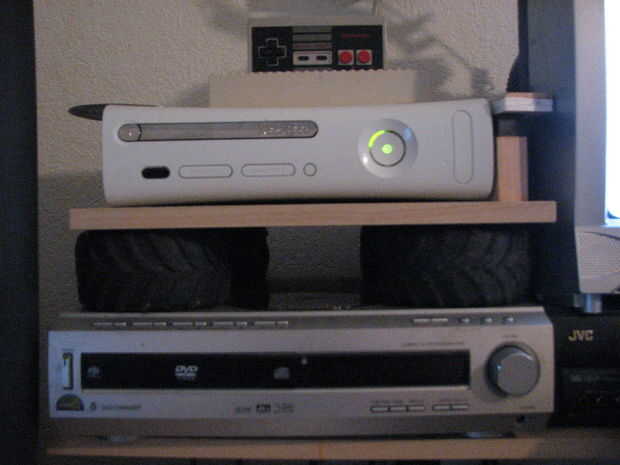 Yay mi nuevo Xbox 360 llegó en el correo hoy, pero lo único es que no tengo lugar para ponerlo. Así que hay sólo una cosa para hacer, hacer un estante de viejos neumáticos de un coche rc.