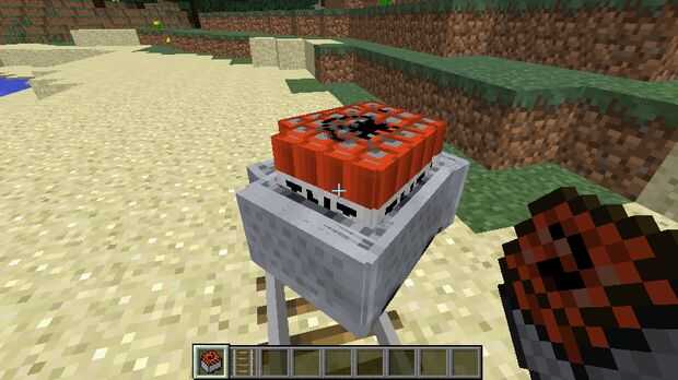 Colocando el vagoneta en el carril, y clic derecho sobre el riel de un montón de veces, usted puede hacer un mini nuke. Entonces empujar la vagoneta de los rieles y prepárate!