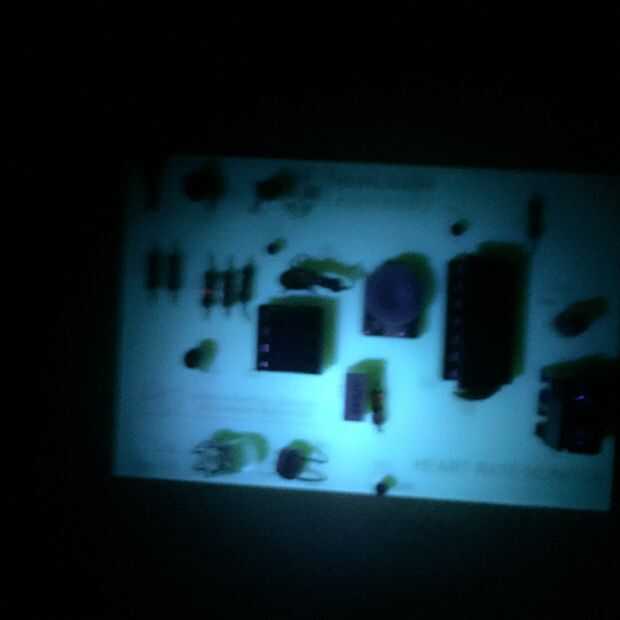 A la derecha es un tablero de circuito verde que brilla intensamente azul.