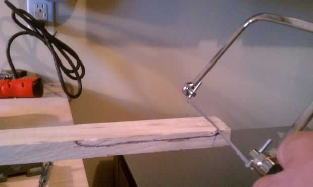 El cuello es una pieza de pino de 1 x 2 de la ferretería. corte de 24" de longitud para este proyecto. Se corta una muesca cerca de 4" en un extremo que se convertirá en el cabezal donde van las clavijas de afinación. Estos se instalan por tres agujeros en el cabezal de perforación y fijación con tornillos para madera que vinieron con ellos. Estas clavijas de afinación de Amazon fueron utilizadas.