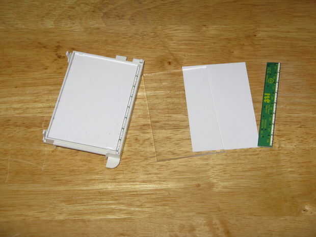 La pantalla LCD se construye lo mismo que el LCD en pequeños teléfonos, la luz de fondo consistió en una capa reflexiva una óptica capa plástica y una tira de LED de ocho LEDs dos en serie que cuatro líneas en paralelo.