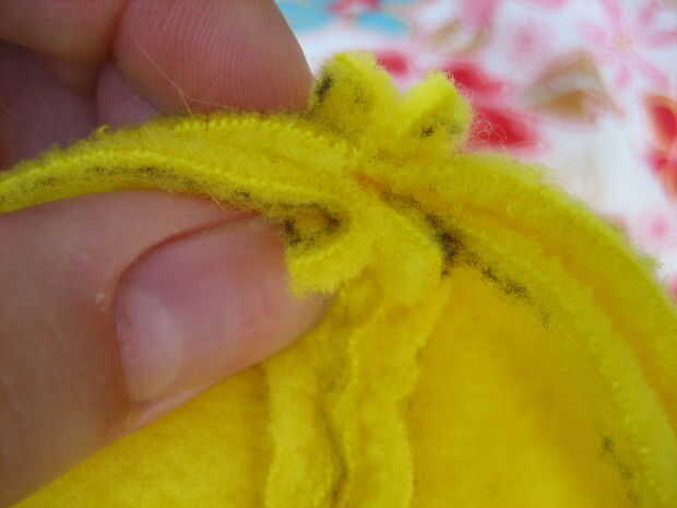 Línea de la costura parte inferior con una de las costuras del torso. Empiezas a coser en la zona. Normalmente empiezo mis puntadas justo donde confluye la costura. Así que sabes estás en blanco.