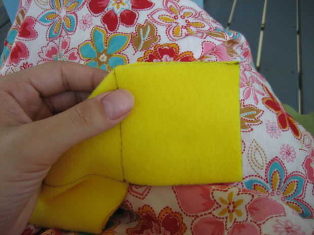 Ahora, comience a coser metiendo la aguja por el borde donde se encuentran dos plazas. (La imagen hará más sentido). Seguir costura, con puntadas pequeñas de hasta 1/4 pulgadas desde el borde hasta sólo borde.