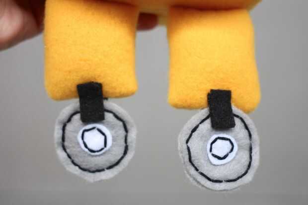 Fieltro y bordado seda hacen las ruedas - cosieron las ruedas y luego pegado en el uso de tiras de fieltro negro. Easy peasy!