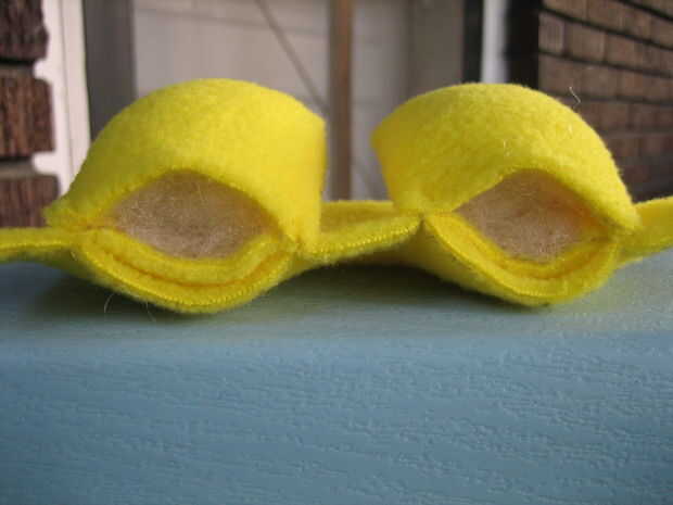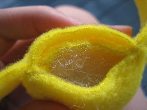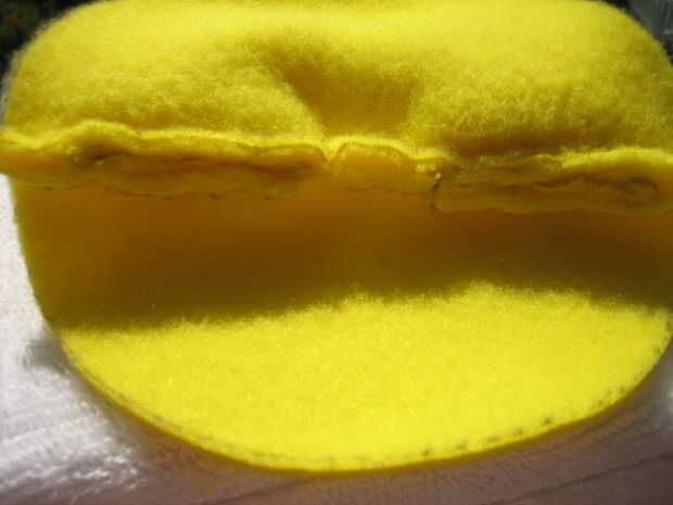 Ahora, tome sus piernas y determinar donde desea que sean. Deben ser espaciados uniformemente alrededor de 1/2 pulgada lejos del borde exterior. Una vez que has determinado esto, te cose la parte superior fuera de los bordes de las piernas a la tela por debajo de ellos. Voy hacer esto a cada lado de cada pierna.