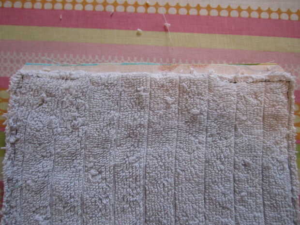 En el lado de apertura, sólo recortar la toalla. Necesita a tela adicional allí así que usted puede coser la abertura. :)