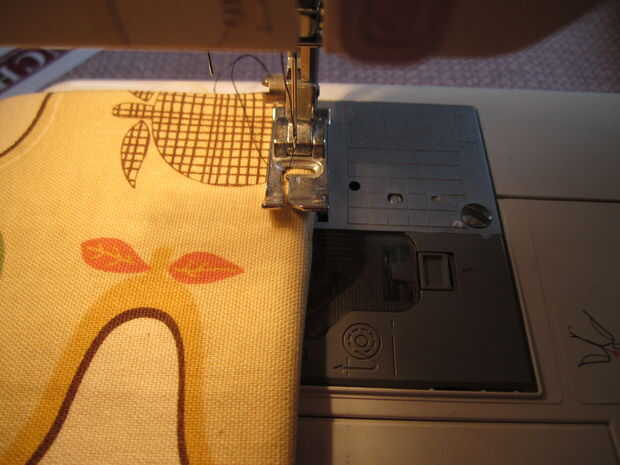Inicie en el lado de apertura y vaya todo el camino alrededor de la manopla. Girar en las esquinas como antes para que sea una línea continua. Alinee el extremo con el principio como mejor puede y pespunte. Recortar los hilos. :)