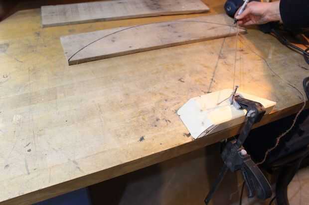 Utilice una cadena para marcar el arco como se muestra. Tenga en cuenta que el arco se cruza con las esquinas.
